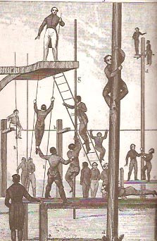 Photo Credit: Pole and mast climbers from a pre-1851 engraving. Public Domain, https://commons.wikimedia.org/w/index.php?curid=6835692