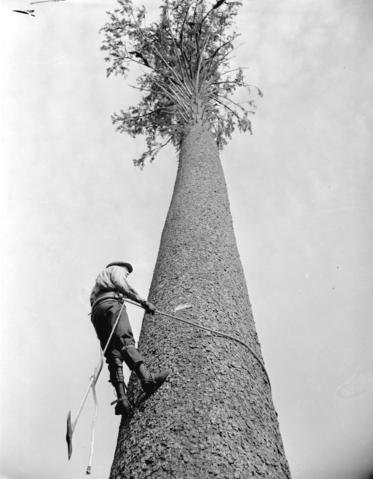 Photo Credit: A 1945 photo of a logger climbing a tree on the Queen Charlotte Islands, Vancouver, British Columbia. http://searcharchives.vancouver.ca/logger-climbing-tree-on-queen-charlotte-islands