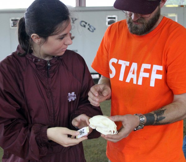 Photo Credit: Students identify a mammal based on its skull features at the wildlife event at the 58th Southern Forestry Conclave hosted by Mississippi State University. Thanks to the Mississippi State University Forestry Club for providing this photo.